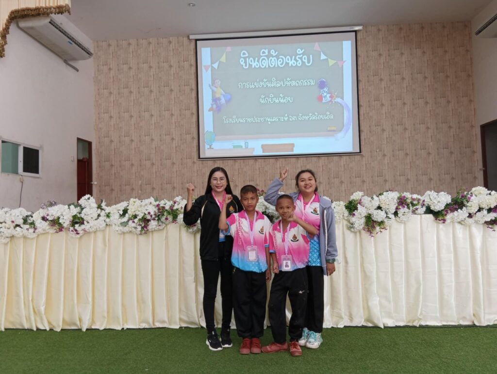 รางวัลรองชนะเลิศ อันดับ 1 ระดับเหรียญทอง การแข่งขันเครื่องร่อน ประเภทร่อนนานยิงยาง ชั้น ป.4-ป.6