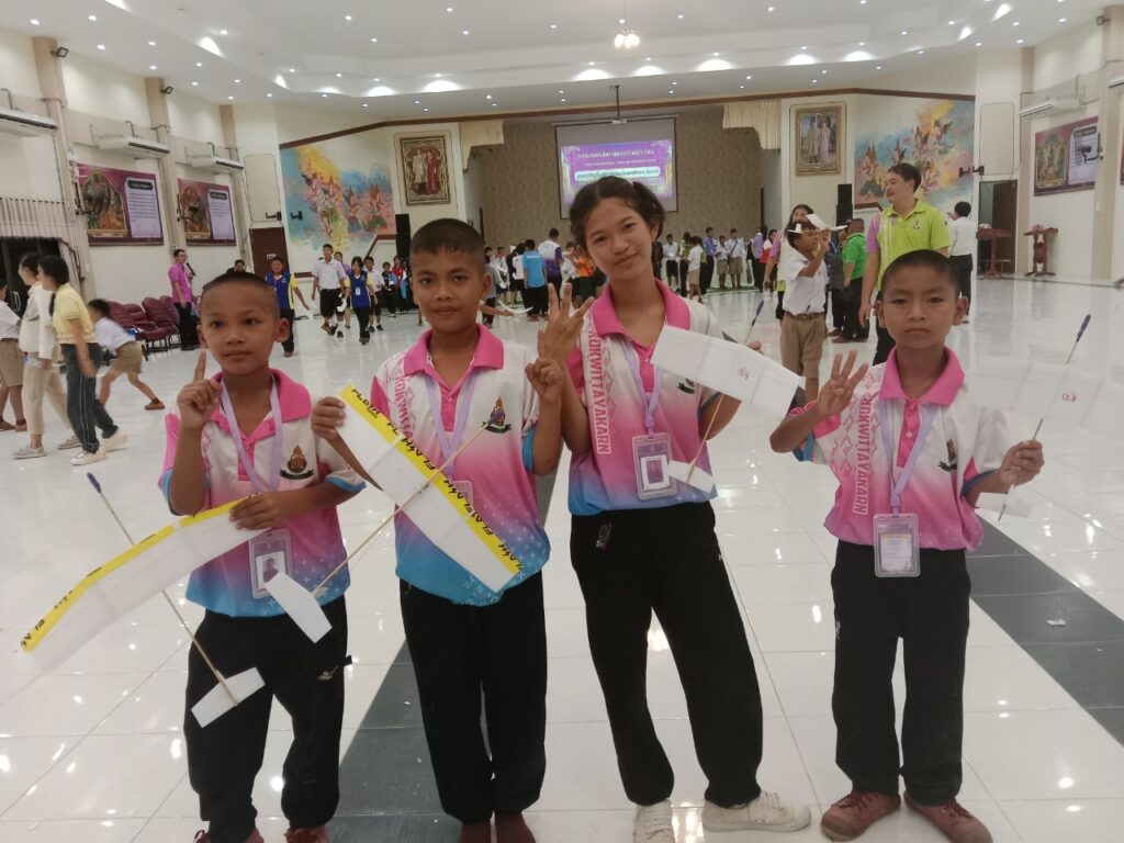 รางวัลชนะเลิศ ระดับเหรียญทอง การแข่งขันเครื่องร่อน ประเภทร่อนนานปล่อยด้วยมือ ชั้น ป.4-ป.6