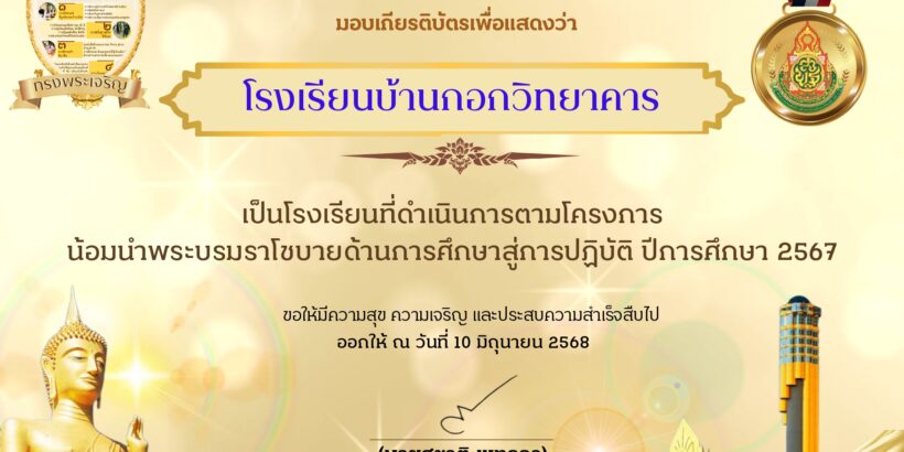 โรงเรียนบ้านกอกวิทยาคาร ได้รับเกียรติบัตร เป็นโรงเรียนที่ดำเนินการตามโครงการน้อมนำพระบรมราโขบายด้านการศึกษาสู่การปฏิบัติ ปีการศึกษา 2567 Posted on 10 มิถุนายน 2025 by admin แนะแนวเรื่อง « กิจกรรมรณรงค์และการป้องกันแก้ปัญหาบุหรี่ไฟฟ้าในสถานศึกษากิจกรรม พิธีไหว้ครู ประจำปีการศึกษา 2568 »