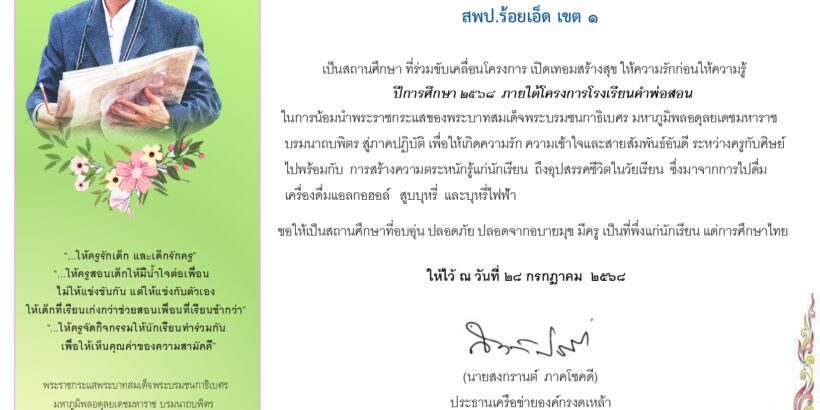 โรงเรียนบ้านกอกวิทยาคาร ได้รับการคัดเลือก เป็นสถานศึกษาที่ร่วมขับเคลื่อนโครงการเปิดเทอมสร้างสุข ให้ความรักก่อนให้ความรู้ ปีการศึกษา 2568 ภายใต้โครงการโรงเรียนคำสอนพ่อ ในการน้อมนำพระราชกระแสของพระบาทสมเด็จพระบรมชนกาธิเบศร มหาภูมิพลอดุลยเดชมหาราช บรมนาถบพิตร สู่ภาคปฏิบัติ เพื่อให้เกิดความรัก ความเข้าใจและสายสัมพันธ์อันดี ระหว่างครูกับศิษย์ ไปพร้อมกับ การสร้างความตระหนักรู้แก่นักเรียน ถึงอุปสรรคชีวิตในวัยเรียน ซึ่งมาจากการไปดื่ม เครื่องดื่มแอลกอฮอล์ สูบบุหรี่ และบุหรี่ไฟฟ้า จากสำนักงานเครือข่ายองค์กรงดเหล้า (สคล.)